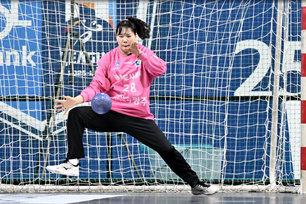 ![]() 광주도시공사 이민지 골키퍼가 1일 광주 빛고을체육관에서 열린 서울시청과의 신한 SOL Bank 2025-2026 핸드볼 H리그 여자부 1라운드 경기에서 슛을 막아내고 있다. 이민지는 이날 7세이브를 기록하며 골문을 지켰다. <한국핸드볼연맹 제공> |