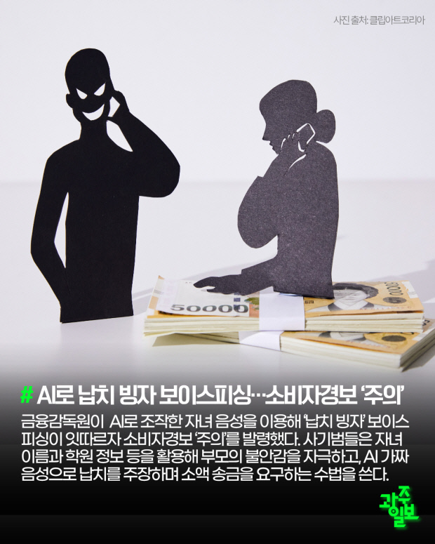 금융감독원이 AI로 조작한 자녀 음성을 이용해 ‘납치 빙자’ 보이스피싱이 잇따르자 소비자경보 ‘주의’를 발령했다. 사기범들은 자녀 이름과 학원 정보 등을 활용해 부모의 불안감을 자극하고, AI 가짜 음성으로 납치를 주장하며 소액 송금을 요구하는 수법을 쓴다.