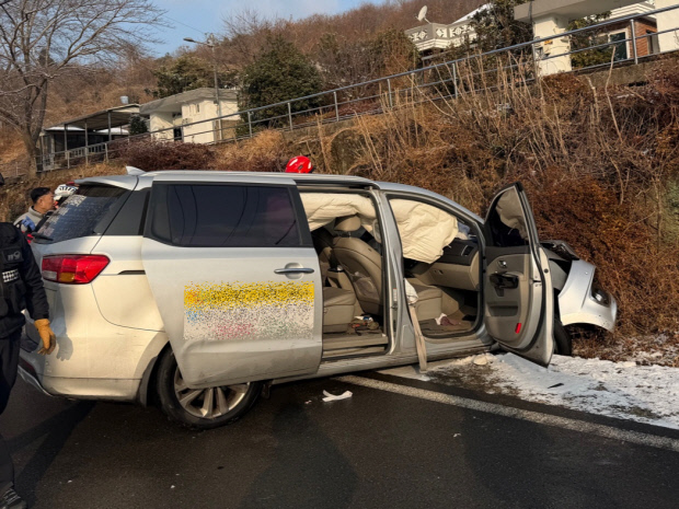경찰은 A씨가 굽은 내리막길을 주행하던 중 눈길에 차량이 미끄러지면서 사고가 난 것으로 보고 있다.