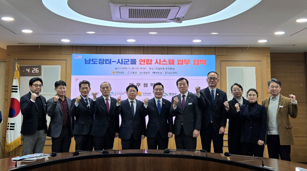 2일 전남도에 따르면 남도장터는 지난 28일 고흥·영암·완도군과 ‘남도장터·시군 몰 연합 시스템 업무 협약’〈사진〉을 맺고 공공형 종합 유통 플랫폼으로서의 경쟁력 강화에 힘을 모으기로 했다.