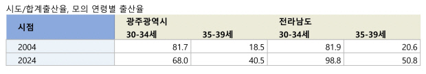 6일 국가데이터처 인구동향조사에 따르면 지난 2024년 광주·전남 20대~30대 초반 엄마가 낳은 아기는 9752명이었고, 30대 후반~40대 엄마의 출생아는 4460명으로 집계됐다.