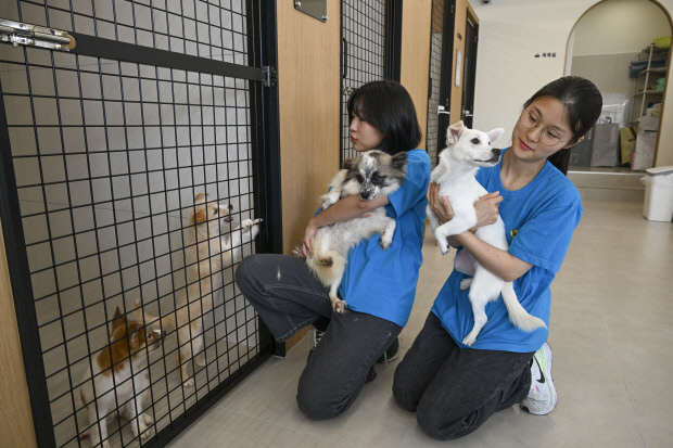 ![]() 지난해 광주 동구 불로동에 새로 조성된 유기견 입양센터에서 자원봉사자들이 보호 중인 강아지를 안고 돌보고 있다. 입양센터는 고향사랑기부제로 모인 성금 3억9천만 원을 투입해 마련됐다. /김진수 기자 jeans@kwangju.co.kr |