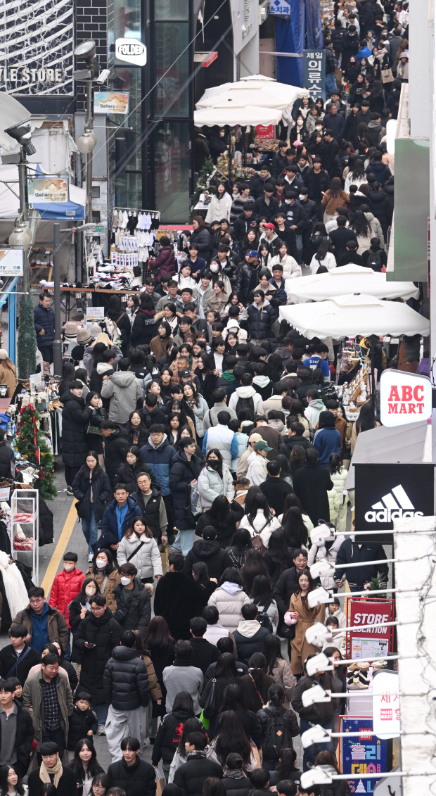 ![]() 광주시 동구 충장로 상권이 재도약하기 위해서는 장기 재생 전략을 통해 차별화된 거리 브랜드를 구축해야 한다는 지적이 나온다. 지난 2024년 성탄절 충장로가 모처럼 붐비고 있다. /나명주 기자 mjna@ |