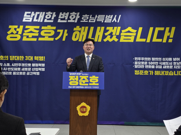 더불어민주당 정준호(광주 북구갑) 국회의원이 광주와 전남의 행정통합을 전제로 한 초대 ‘호남특별시장’ 선거 출마를 공식화했다.