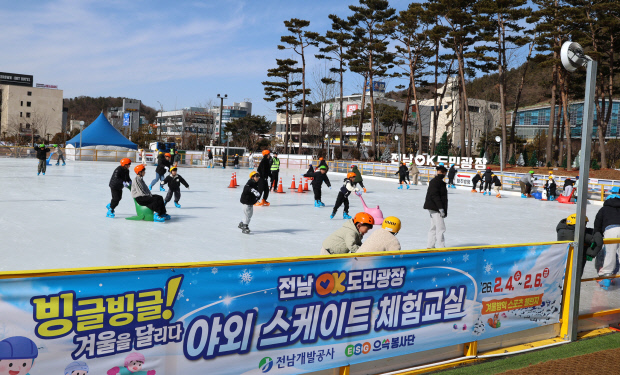 10일 전남개발공사에 따르면 공사가 개발 이익을 환원해 만든 ‘전남OK도민광장 야외 스케이트장’이 지난 8일 운영을 종료할 때까지 47일 간 4만 명이 이용한 것으로 집계됐다.