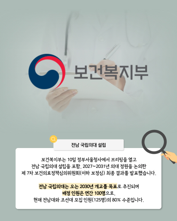 [오늘의 지면] 전남 국립의대 설립 확정…2030년 개교 목표