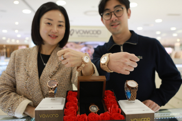 ![]() 롯데백화점 광주점 2층 보우드 매장에서 직원들이 커플시계를 선보이고 있다. <롯데백화점 광주점 제공> |