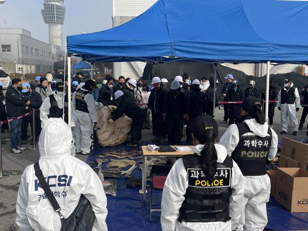 ![]() 12일 무안군 삼향읍 무안국제공항에서 국토교통부 항공·철도사고조사위원회와 피해자지원단이 주관한 사고기 잔해물 재조사 작업이 진행되고 있다. /윤준명 기자 yoon@kwangju.co.kr |