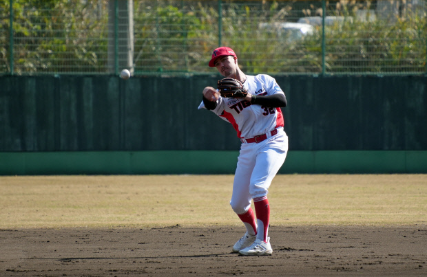 ![]() KIA 타이거즈의 첫 아시아쿼터 선수인 내야수 제리드 데일이 일본 아마미오시마 스프링캠프에서 송구 훈련을 하고 있다. |