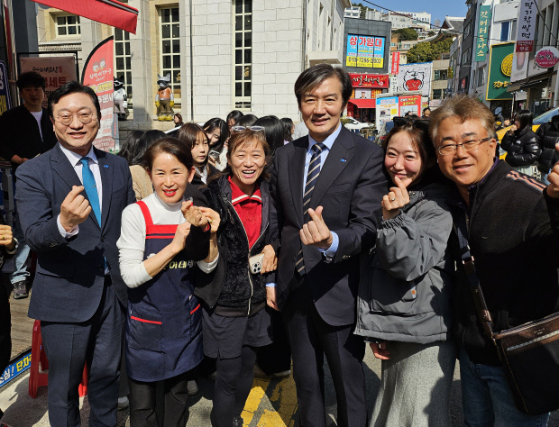 ![]() 조국혁신당 조국(왼쪽 네번째) 대표가 22일 오전 여수시를 방문해 여수시장 출마를 선언한 명창환(맨 왼쪽) 전 전남도 행정부지사와 상인들을 만나 사진 찍고 있다. <명창환 예비후보 측 제공> |