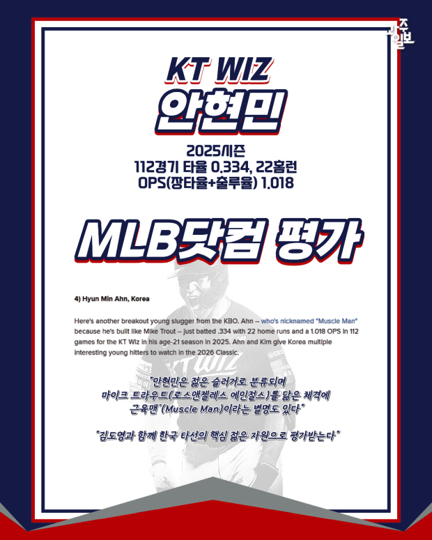 [광클] 김도영·안현민, MLB닷컴 선정 2026 WBC 주목 선수 11인 포함