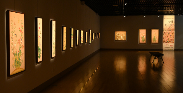 ![]() 강진민화협회 회원전이 열리고 있는 2층 기획전시실. |