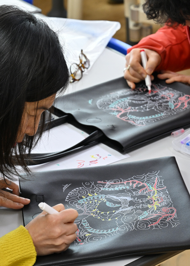 ![]() 한국민화뮤지엄 방문객이 민화 그리기 체험을 하고 있다. |