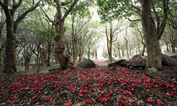 천연기념물로 지정된 백련사 동백나무숲. <강진군>