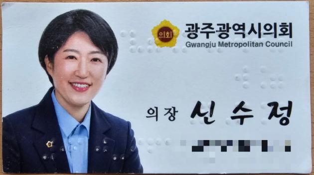 신수정 광주시의회 의장 명함 사진, <신수정 의원 측 제공>