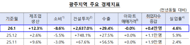 ![]() 광주 최근 주요 경제지표 정리<한국은행 광주전남본부 제공> |