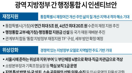 파격 재정 지원·서울시 동등 법적 지위·공공기관 이전 우선·산업 활성화 구체적 청사진 통합 급물살…시도, 법적 구속력 갖춘 제도 안착에 총력