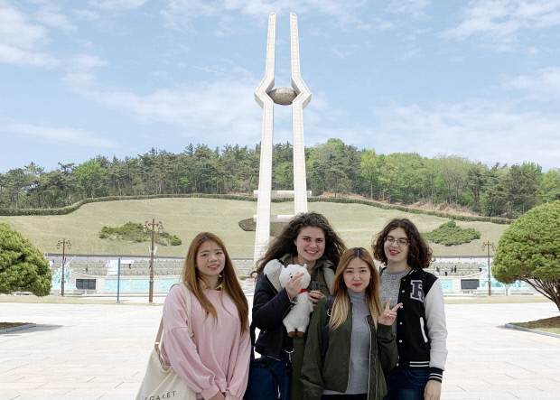 이날 5·18민주묘지를 찾은 전북대학교 교환학생인 한나(여·25·베트남)씨와 갈리나 오스타펜코(여·23·우크라이나)씨, 조토바 나스쟈(여·20·우크라이나)씨, 구렌게에바 디아나(여·20·카자흐스탄)씨 일행은 “BTS을 좋아해 팬클럽 ARMY에 ‘입대’(방탄복과 군대처럼 방탄소년단도 팬클럽과 항상 함께라는 의미)한 절친사이”라고 했다. 이들은 지난해 8월께 한국에 온 뒤 BTS를 통해 친해졌다고 한다.