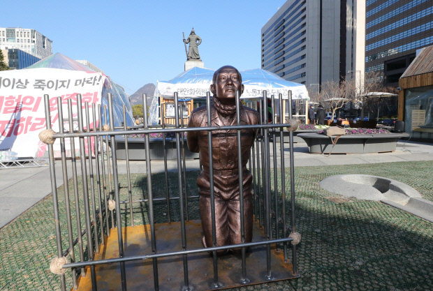 해당 조형물은 지난해 12월 신군부가 일으킨 12·12 군사반란 40년을 맞아 5·18단체들이 서울 광화문 광장에 설치, 시민들에게 발로 차거나 때리도록 했다.