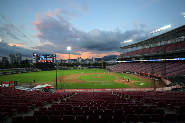 ![]() 코로나19 재확산에 따라 무관중으로 전환되면서 텅 빈 챔피언스필드의 관중석. [KIA 타이거즈 제공] |