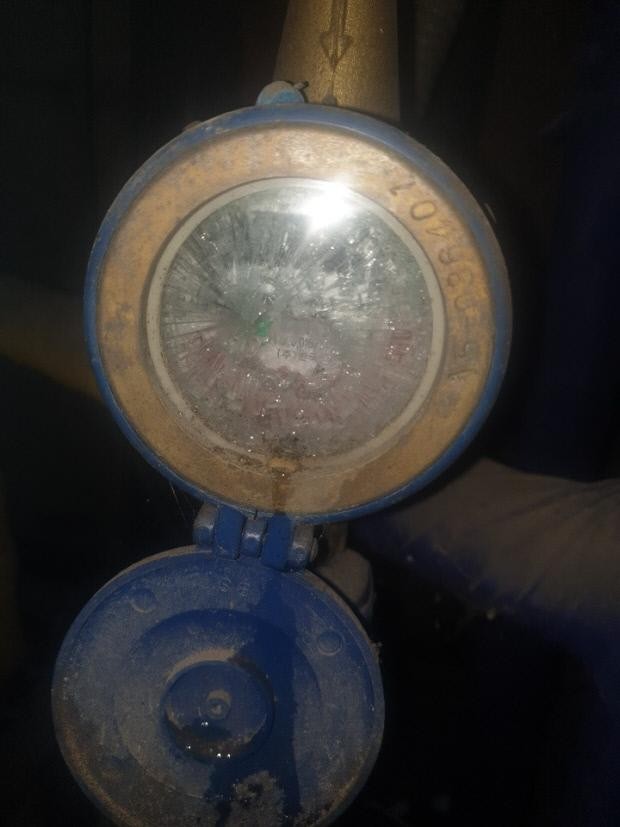 ![]() 주말 사이 한파로 깨져 물이 새고 있는 계량기. <수도 설비 민간 업체 제공> |