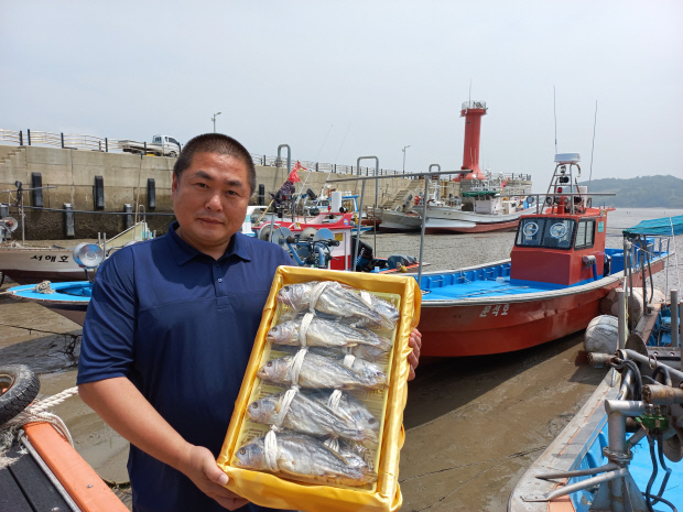 ![]() 귀어 3년 차인 장문석 영광 구수대신어촌계 사무장이 자신의 이름을 내건 3t 어선 ‘문석호’ 앞에서 구수·대신마을 특산물을 들어 보이고 있다. |