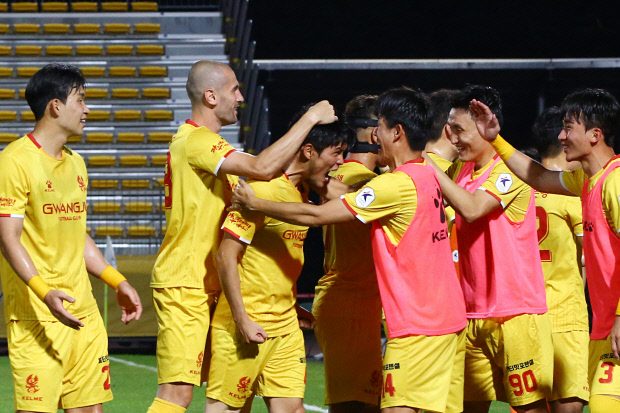 광주는 지난 21일 광주축구전용구장에서 열린 강원FC와의 K리그1 20라운드 경기에서 3-1로 승리를 거뒀다. 9경기 만에 기록된 귀한 승리였다.