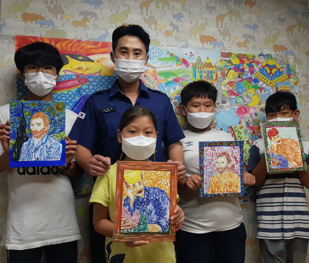 김씨는 매주 2시간씩 유치원생, 초등학생 등 19명을 대상으로 미술 수업을 하고 있다. 키스 해링, 고흐 등의 명화 밑그림을 그려 주면 아이들이 정성껏 색칠을 해 완성시키고, 여기에 재미있는 미술 이론과 화가에 대한 이야기도 곁들이는 수업이다. 김씨는 최근 광주전남지방병무청 모범 사회복무요원 사례로 표창장도 받았다.