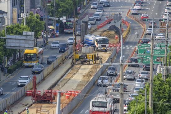 도시철도 2호선은 땅을 얕게 파는 ‘저심도 공법’으로 대부분 구간을 건설할 계획인데, 현장을 확인한 결과 2호선 2구간 일부 구간은 가스관, 케이블선 매장 등의 이유로 저심도 공법이 불가능한 상태다.