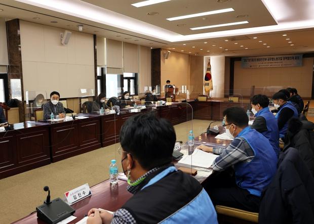 행안부와 대한민국 공무원노동조합총연맹, 전국공무원노동조합, 전국 통합 공무원노동조합이 13일 정부 서울 청사 대회의실에서 올해 2차 정책협의체 회의를 개최했다. 정부와 공무원 노조의 정책협의회는 2018년부터 매년 2회 열리고 있다. 회의에서 정부는 노조의 의견을 받아들여 민원실에 폐쇄회로 TV, 비상벨, 녹음 전화를 설치하고 안전요원을 배치하기로 했다. 악성 민원으로부터 민원 공무원을 보호하기 위함이다. 또한 시간 선택제 공무원을 근무 시간에 따라 소수점으로 표기하던 방식(사람 1명을 주당 근무시간에 따라 ‘0.5’로 표기)이 차별적이라는 지적을 받아들이고 표현을 사용하지 않기로 했다.
