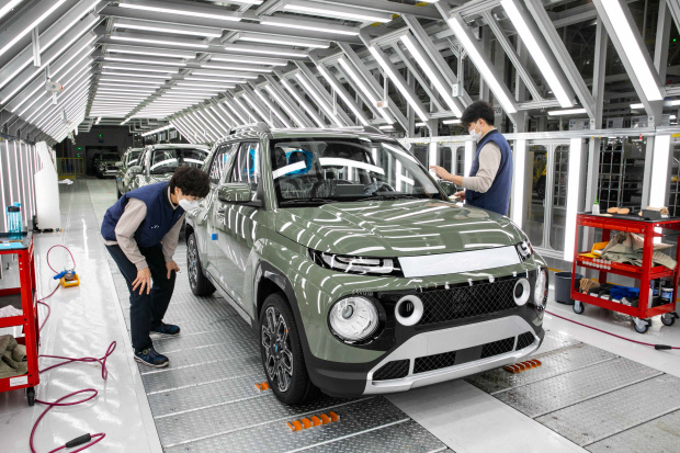 ![]() GGM 직원들이 캐스퍼를 출고하기 전 최종 검점을 하고 있다. <GGM 제공> |