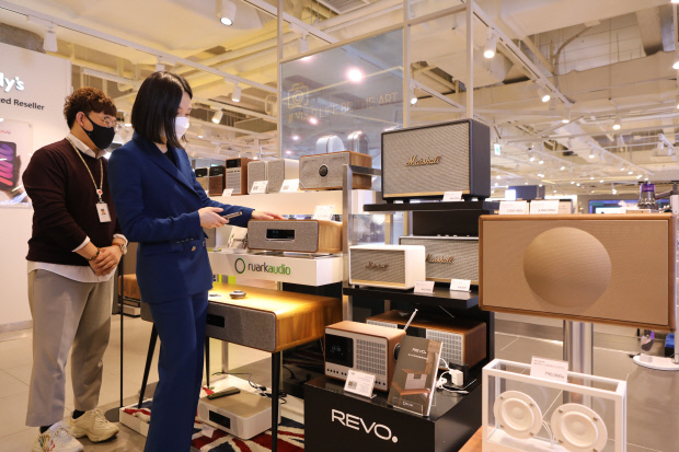 해외 여행이나 공연장 문화를 즐기지 못하는 고객들이 고가의 음향 가전을 구비하면서 ‘보복 소비’를 하는 셈이다. ‘넷플릭스’ 등 온라인 동영상 서비스(OTT)로 영화와 드라마를 즐기는 고객 사이에서도 고가 음향 가전이 인기를 끌고 있다.