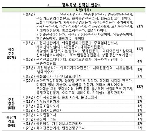 정부는 신직업 관련 정보를 통합 관리하고 이를 제공할 포털 등도 만들 계획이다. 청년구직자가 신직업에 도전하면 직무훈련과 교육을 지원하고 창업기업과 대학에도 신직업 창출을 위한 인센티브를 제공한다.