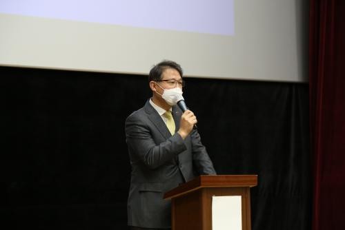 ![]() 탁용석 광주정보문화산업진흥원장은 3일 개최한 2022년 시무식에서 ‘콘텐츠·ICT산업 20조원 도시 광주! 청년에게 희망을’이라는 구호를 내걸었다.<진흥원 제공> |