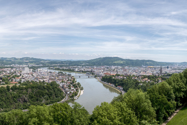 ![]() 린츠 시내를 가로지르는 다뉴브강 전경. |
