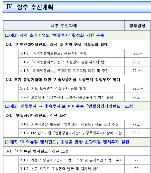 이번 계획은 지방 기업의 성장에 필요한 투자 재원을 4700억원 이상 공급하는 것으로, 우선 지역의 초기 엔젤투자 활성화 기반 구축을 위해 광주·전남·전북·제주를 아우르는 호남권과 충청권에 ‘지역 엔젤허브펀드’를 50억원씩 총 100억원 규모로 조성한다.
