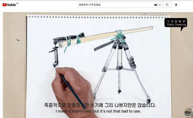 ![]() ‘권승찬의 드로잉일상’에 업로드했던 첫 영상물. 영상작업에 필요한 거치대를 만들어 그렸다. |