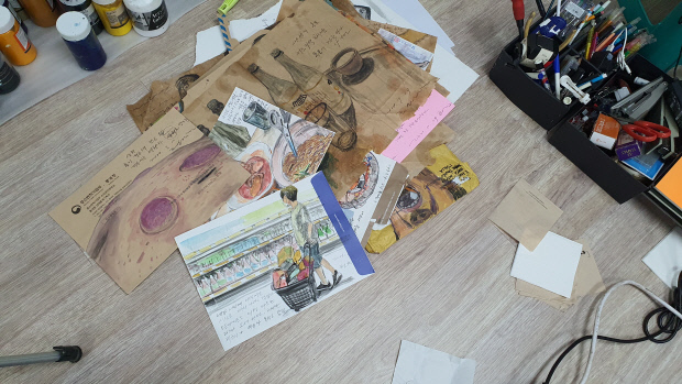 “코로나19 팬데믹이 오면서 여러 전시 일정이나 계획들이 연기되거나 축소가 됐습니다. 프로젝트형 작가이기도 하고 레지던스 돌아다니며 기획하면서 작업하는 스타일인데 일이 많이 줄고 시간도 갑자기 남아돌게 됐죠. 특별히 할 일이 없어서 1년 전부터 매일 일기를 쓰듯 드로잉 작업을 했어요.”