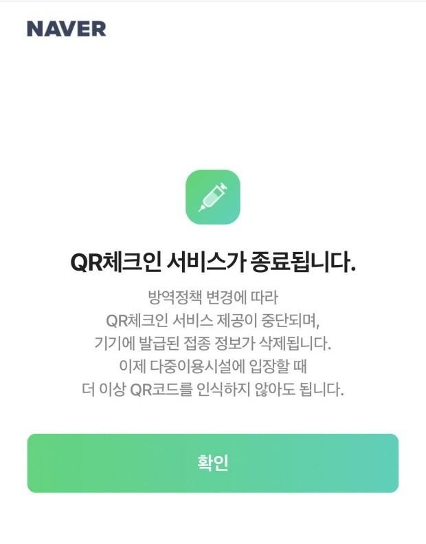 ![]() 1일 정부가 방역패스 운영을 중단함에 따라 네이버·카카오 등 포털 사이트도 일제히 QR체크인 서비스를 중단했다. |
