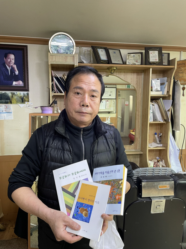 지난 1992년부터 용봉동에서 이발소를 운영해 온 설상환(69) 시인은 최근 시집 ‘머리카락을 다듬으며 쓴 시’를 출간했다. ‘붕어빵이 행복한 이유’, ‘무궁화가 무궁화에게’를 잇는 세 번째 시집이다.