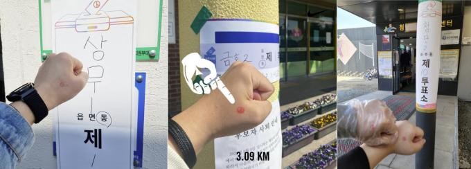 손등에 빨간색 기표 도장을 남기는 가장 흔한 인증샷부터 지지 후보를 짐작할 수 있는 색깔, 명함 등에 기표 도장을 찍어 올리거는 경우, 투표 자체에 의미를 부여하는 인증샷 등도 눈길을 끌었다.