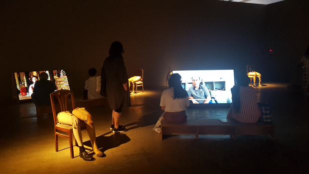 카데르 아티아의 ‘이동하는 경계들’은 광주 트라우마센터를 통해 만난 5·18 유족들의 이야기와 정신과 의사 정혜신 등의 인터뷰를 통해 상실과 상처에 대한 이야기를 들려준다. 옛 국군광주병원의 의자와 의족, 신발 등을 배치한 설치물은 쉽게 치유되지 못하는 ‘상처’에 대해 생각해보게 하는 작품이다.