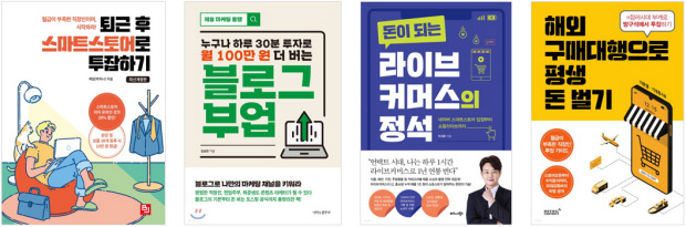 진입장벽이 비교적 낮고 부업을 안정적으로 할 수 있는 플랫폼 관련 책이 인기다. ‘퇴근 후 스마트스토어로 투잡하기’, ‘네이버 블로그로 돈 벌기’, ‘SNS로 돈 벌기’ 등이 이 분야 베스트셀러 순위권에 들었다.