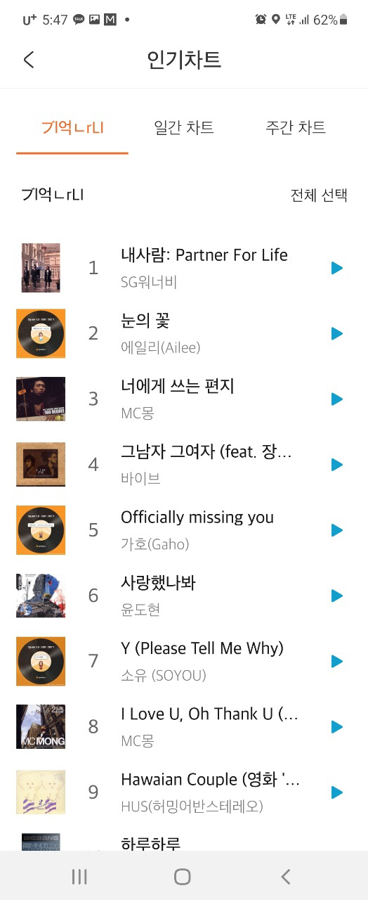 ![]() 음악 인기차트 대부분을 과거에 발매한 노래들이 채우고 있다. |
