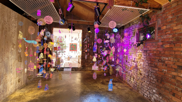 정승원 작가의 설치 작품 ‘연결’은 코로나 시대, 우리가 놓치고 있는 터치의 의미를 알려주는 작품이다. 길게 드리워진 수많은 오브제를 만지고, 그것들이 부딪혔을 때 나는 소리를 들으며 ‘연결’을 꿈꾼다.