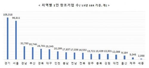 ![]() ■2019년 기준 지역별 1인 창조기업 수.<자료:중소벤처기업부> |