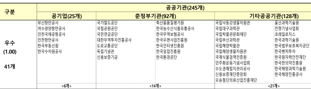 이번 조사에선 농수산식품유통공사와 한국인터넷진흥원 등 41개 기관이 ‘우수’ 기관으로 선정됐다.