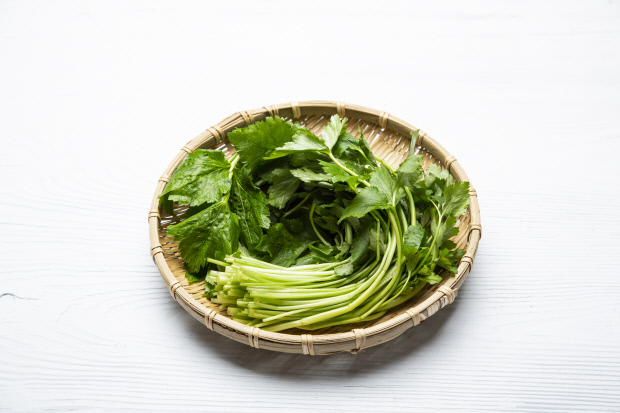 ▲참나물=참나물은 이른 봄에 어린순을 채취하여 나물로 생채를 먹거나 무침, 튀김, 김치 등 다양한 요리 형태로 쓰이며 약리작용은 지혈·고혈압·중풍·신경통 등에 효과가 있다고 알려져 있다. 특히 체내 신진대사와 생리활성을 증진시킬 수 있는 유리당, 필수아미노산 및 필수지방산을 비롯한 비타민과 무기질을 다량 함유하고 있다.