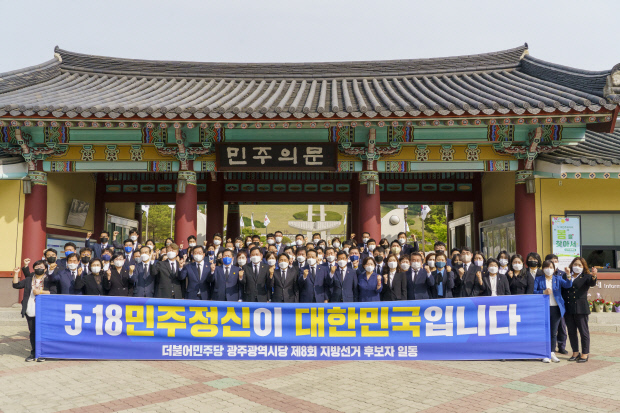 ![]() 6월 1일 지방선거를 앞두고 12일 오전 더불어민주당 소속 후보들이 광주 북구 운정동 국립5·18민주묘지를 참배한 후 필승을 다짐하고 있다.