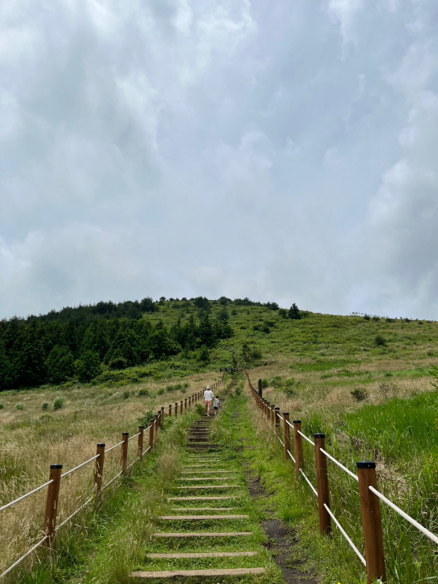 소요 시간은 약 1시간. 나무판 등으로 잘 정비된 계단이 널직이 깔려있어 오르기도 그리 힘들지 않다. 오르는 길에 등심붓꽃, 점나도나물, 찔레, 청미레덩굴 등 제주 어디에서나 흔히게 볼 수 있는 식물들을 만날 수 있다.